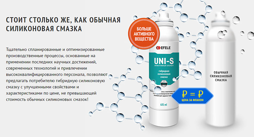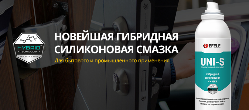 В составе гибридной силиконовой смазки EFELE UNI-S SPRAY не содержится керосина и других растворителей.
